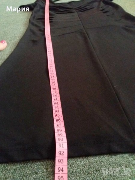 Черна ластична рокля с набори отпред, на снимките светлее, но е черна, няма забележки, еластична, плътна и тежка материя. Дължина 92 см, ширина долу 61 см, талия 37 см, бюст 40 см,.