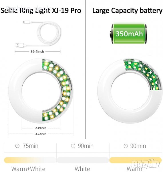 60 двуредови светлинни мъниста (30 студени и 30 топли LED светлини) предлага 3500K-8500K осветление.