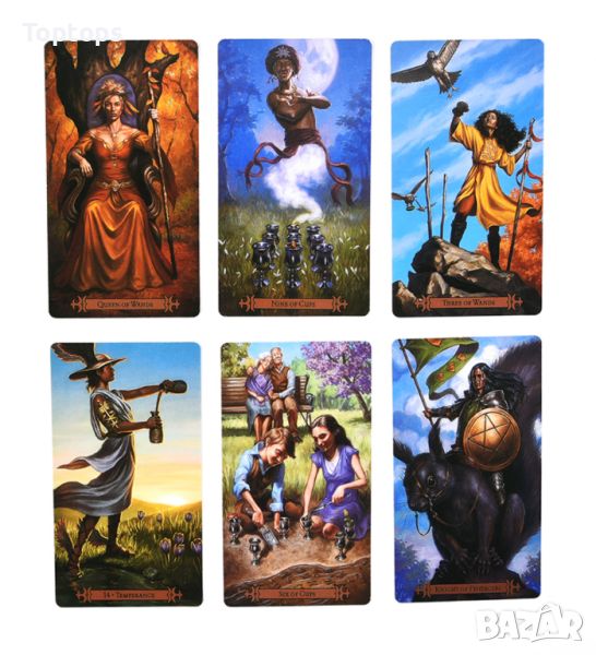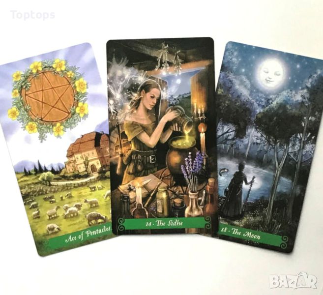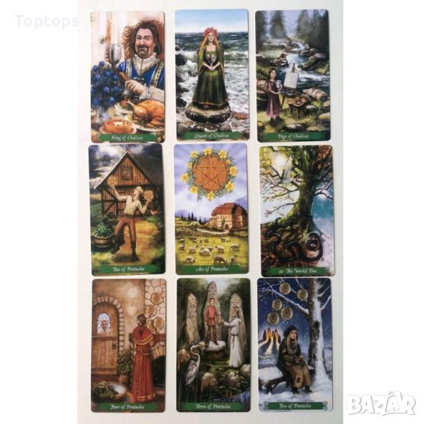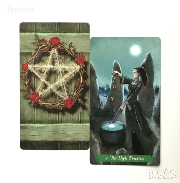 - 78 Таро карти - Green Witch Tarot с pdf книжка с указания на английски. Размерът им е 10,5см х 6,3см, колодата е създадена от Ann Moura.