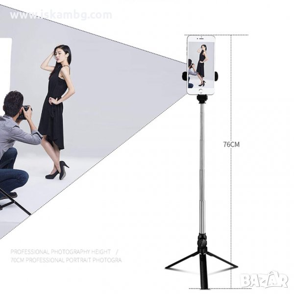 Повече от обикновен селфи стик, това е универсален мини статив/трипод, голям статив/трипод и страхотен селфи стик с уникален дизайн и перфектно качество, има Bluetooth дистанционно, позволяващо ви да правите снимки дистанционно на разстояние до 10 метра.