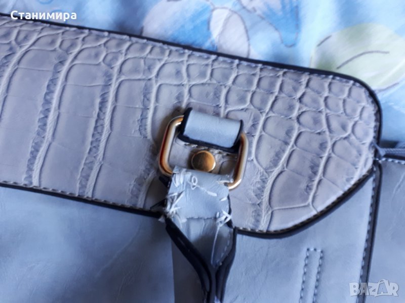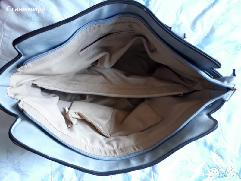 Чантата е напълно запазена. Само свръзката на едната дръжка с чантата е зашита, вижда се на снимките.