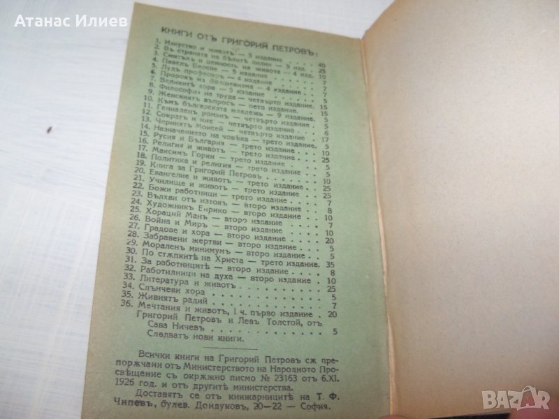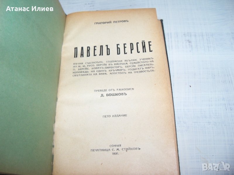"Павел Берсйе" книга на духовния водач Григорий Петров. Книгата е подвързана с твърди корици, като са запазени и оригиналните меки корици. Книгата е издаден през 1930г. , 64 стр. и е в отлично състояние.