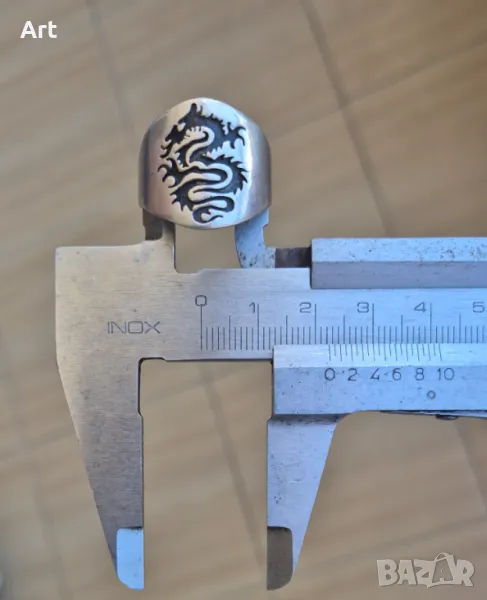 Сребърен пръстен с дракон - вътрешен диаметър 22,3 мм.