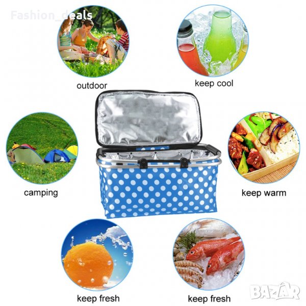 Сгъваема и изолирана чанта за пикник 30L поддържа храна топла студена → Обява 33773278