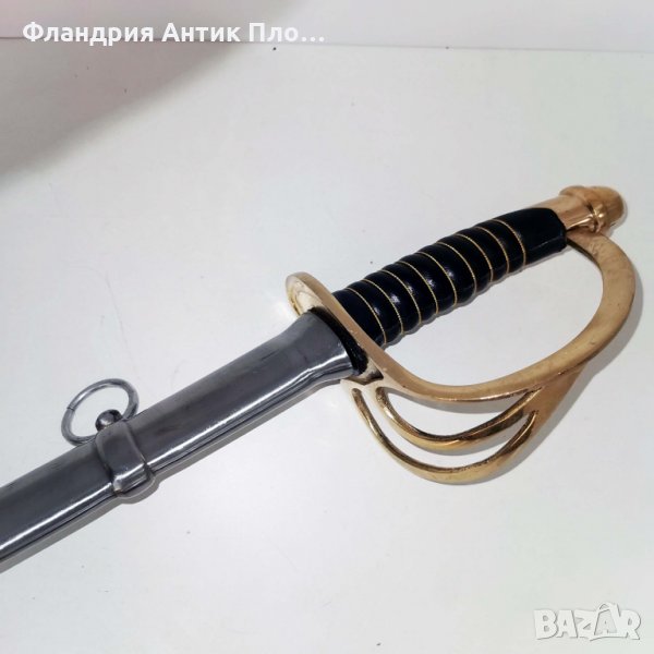 Представяме Ви нова, декоративна сабя, модел: "Cavalerie de Reserve" /френски термин за тежка кавалерия/ Едно изключително добро изпълнение от дебела стомана за сабята и канията и месинг и кожа за дръжката. Дръжка с широк ефес и заострено от двете страни острие. Метална ножница с две халки за захващане.