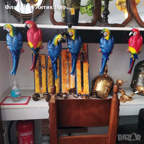 Представяме Ви атрактивна, декоративна фигура за стена - Син папагал Ара Макао. Изработка от чугун, ръчно изрисуван с трайни цветни бои. Ляв или десен. Екзотичен аксесоар за декориране на интериора, който ще внесе много свежест и настроение. Разполагаме с три бройки от посочения цвят! Цената се отнася за 1 бр.