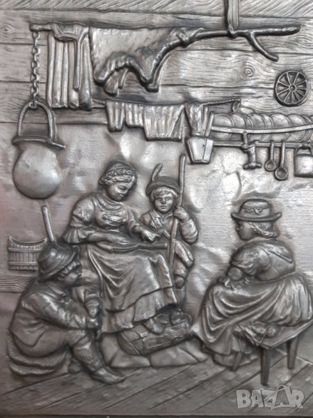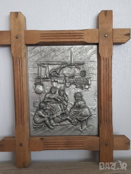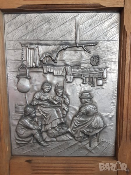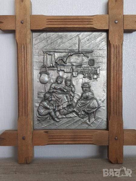 Стара немска релефна и гравирана оловна картина от дъбова масивна рамка,ръчна изработка.Размер на картината с рамката 52/44см.Размери само на картината 31/24см