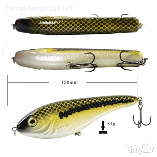Воблер тип JERKBAIT за риболов на хищни риби – 15 см./81 гр.