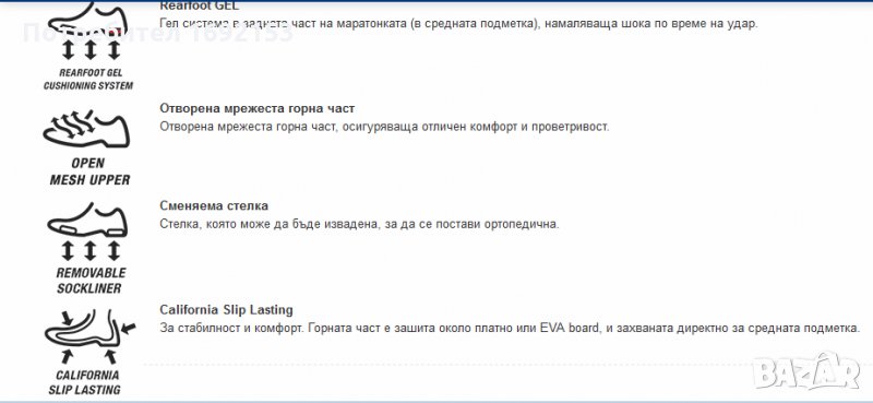 • Гел система в задната част на подметката, омекотяваща стъпването;
