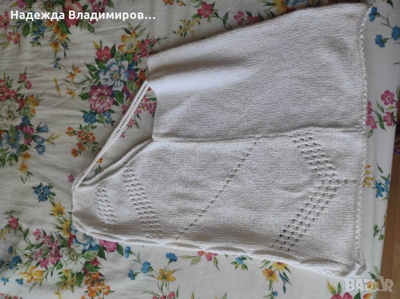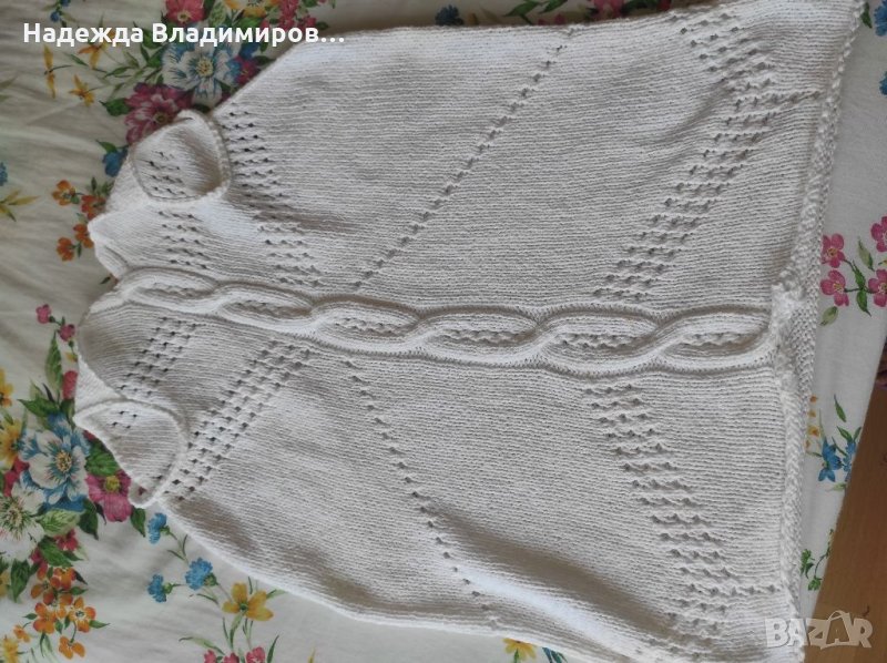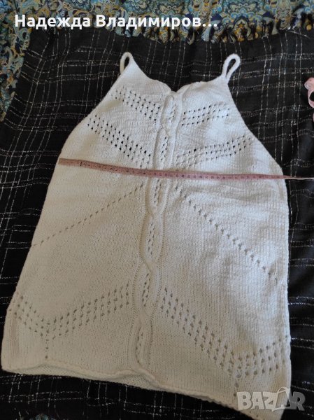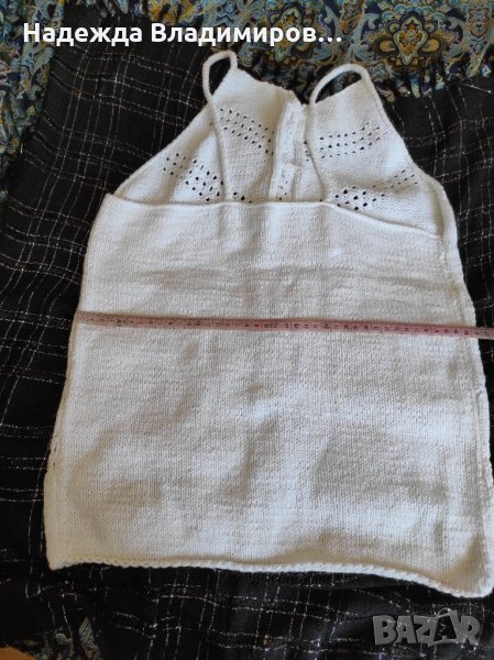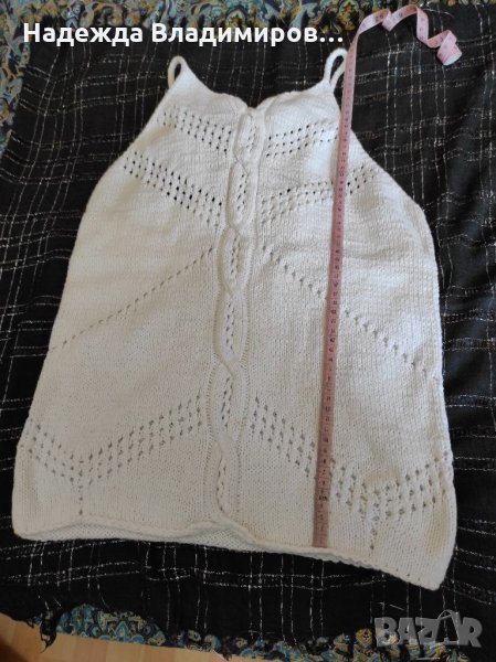 Продавам чисто нова плетена блуза с презрамки,тип потник,от пан,бяла.Дължина-63см., ширина-39см.