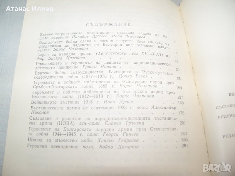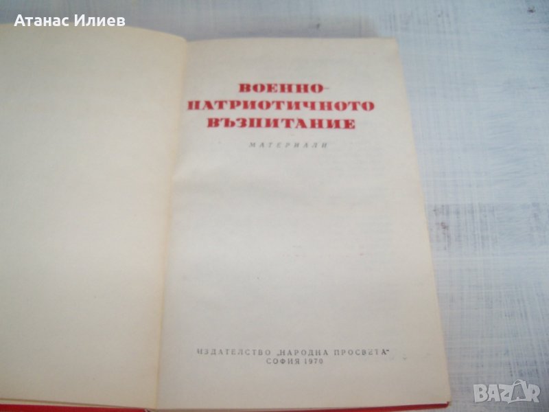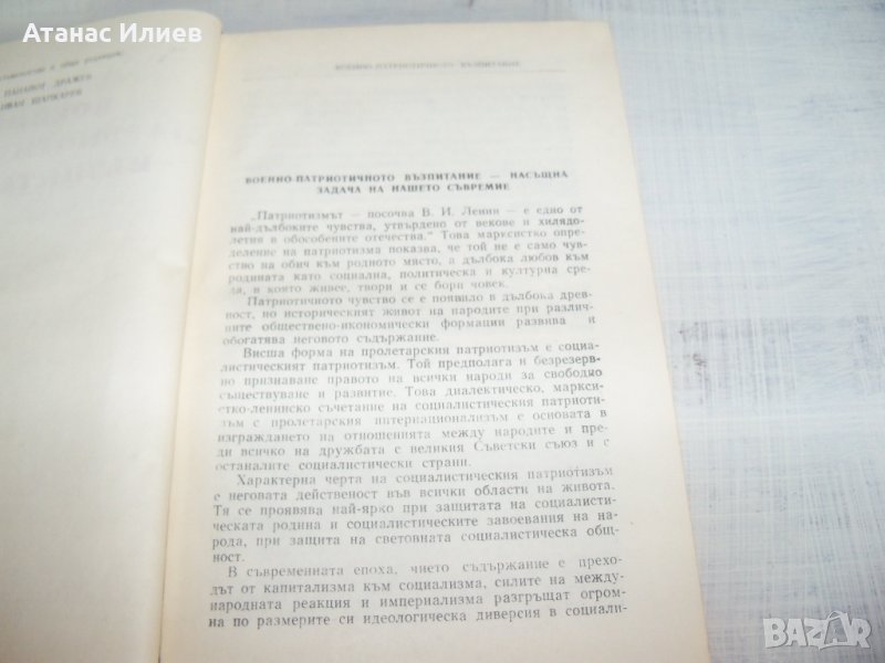 "Военно-патриотичното възпитание" сборник с материали под редакцията на Панайот Дражев и Иван Шапкарев. Книгата е издадена по времето на соца 1970г. от издателство "Народна просвета". Книгата е с твърди корици, 290 стр. в отлично състояние.