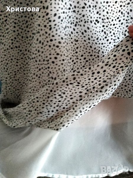-Бял нежен топ на черни точици, без ръкав, с къдри по ръкавната извивка и подплата, H&M, размер по етикет 42.100% полиестер.