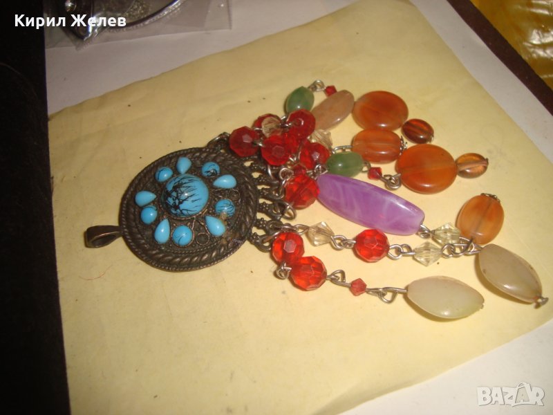 ПОСРЕБРЕН РАЗКОШЕН АРТ МЕДАЛЬОН БОГАТО УКРАСЕНО ФЕШЪН БИЖУ 21922