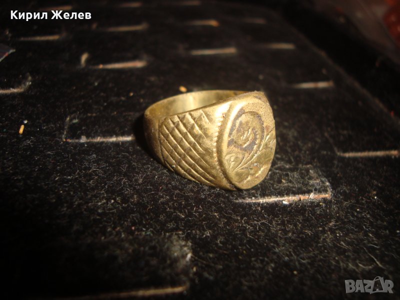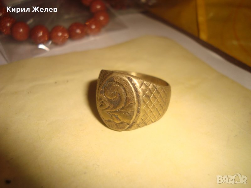 СТАР ПОЗЛАТЕН БРОНЗОВ ПРЪСТЕН ФЛОРАЛНО ОРНАМЕНТИРАН РЪЧНА МАЙСТОРСКА ИЗРАБОТКА МАСИВЕН 9635