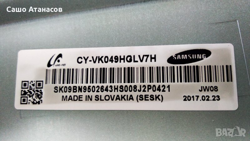 SAMSUNG UE49KU6502U със счупена матрица ,BN44-00876C ,BN41-02528A ,WCK730B ,CY-VK049HGLV7H ,SJ160108