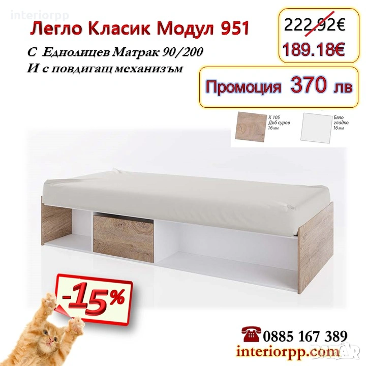 15% Промоция на Легло единично Класик 951 + матрак 90/200 !