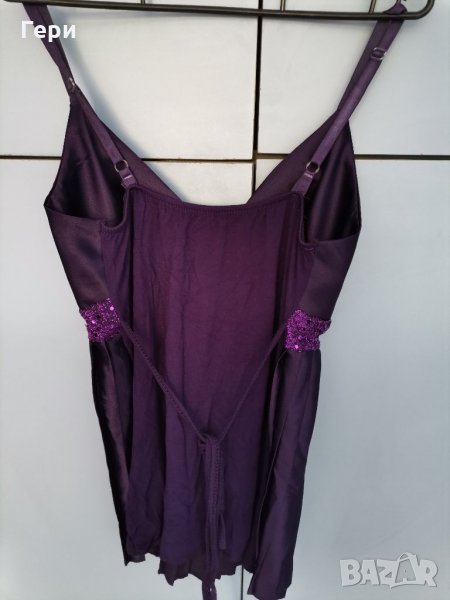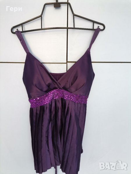 С подплънки на бюста, може да се носи и без сутиен, презрамките се регулират. Дължина -
