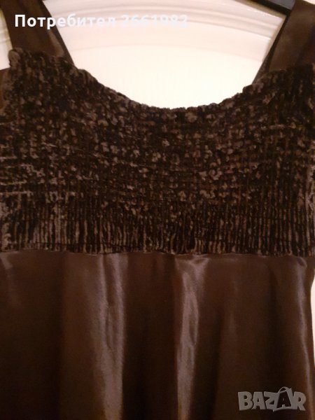 Дълга сатенена кафява рокля с плюш → Обява 33800068