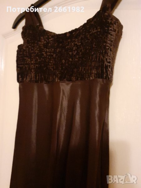 Дълга сатенена кафява рокля с плюш, снимка 1 - Рокли - 33800068 Дълга сатенена кафява рокля с плюш, снимка 2 - Рокли - 33800068 Дълга сатенена кафява рокля с плюш, снимка 3 - Рокли - 33800068 1/3