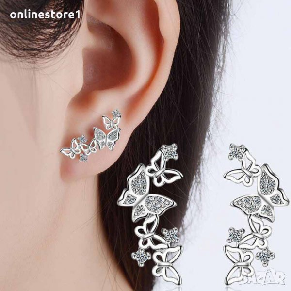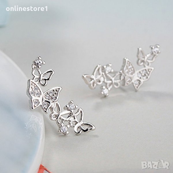 Уникални сребърни обеци ято пеперуди, подходящи за Вашето ежедневие или по-специален повод, закопчаване на винтче.