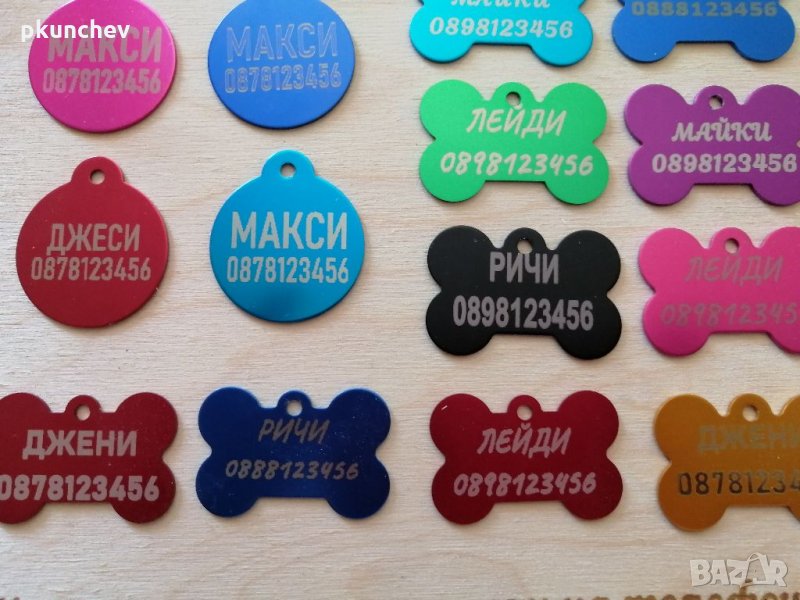 Алуминиеви, лазерно гравирани табелки за домашни любимци.