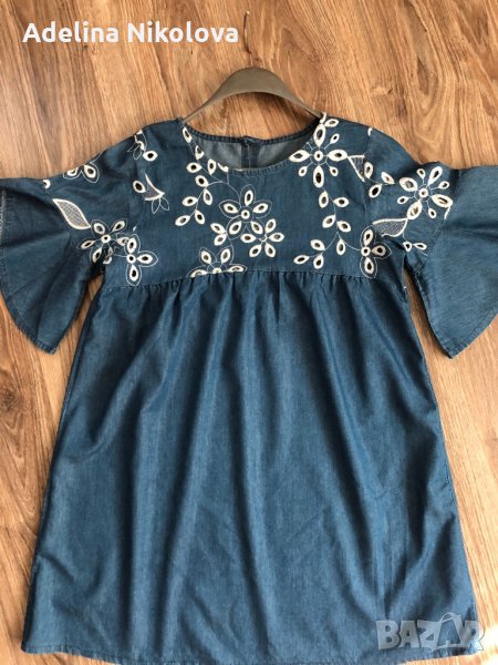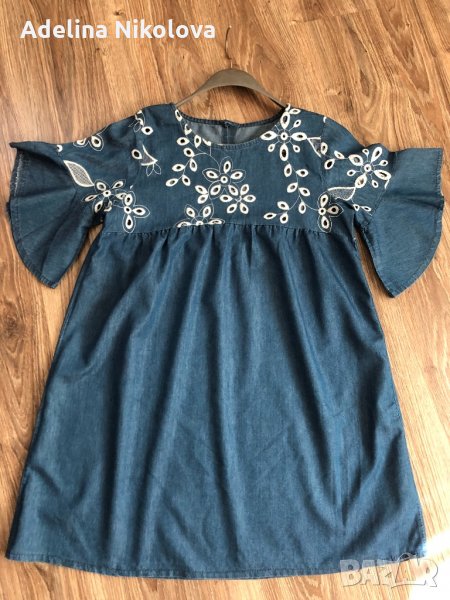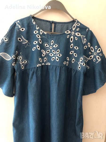 Дънкова рокля рязана бродерия → Обява 33808407