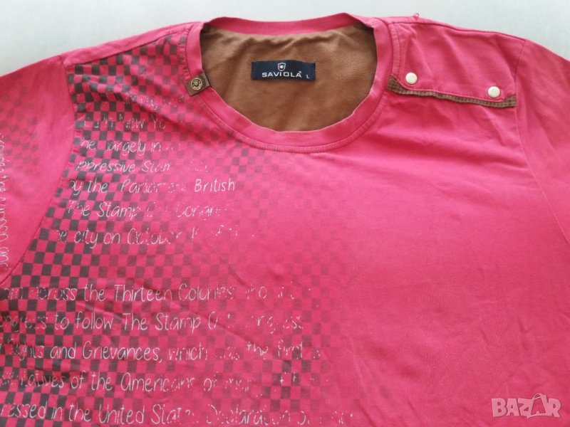 Мъжка блуза фланелка марка SAVIOLA, цвят малиново червено, - размер L, рамене 40 см, гърди 50 см /обиколка 100 см/, дължина - 67 см.Отговарям на съобщения тук, изпращам с куриер или лично предаване в София.