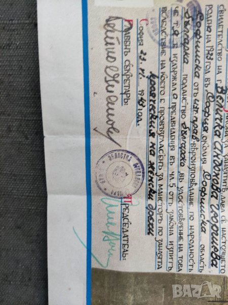 Продавам стар документ Майсторско свидетелство Кояч на женски дрехи София 1943 , снимка 1 - Други ценни предмети - 33809957 Продавам стар документ Майсторско свидетелство Кояч на женски дрехи София 1943 , снимка 2 - Други ценни предмети - 33809957 Продавам стар документ Майсторско свидетелство Кояч на женски дрехи София 1943 , снимка 3 - Други ценни предмети - 33809957 1/3