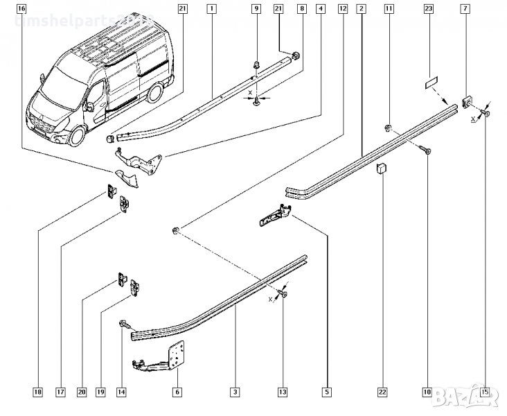 Средна Ролка за Opel Movano, Renault Master, Nissan NV400 след 2010, Дясна плъзгаща врата
