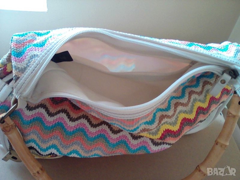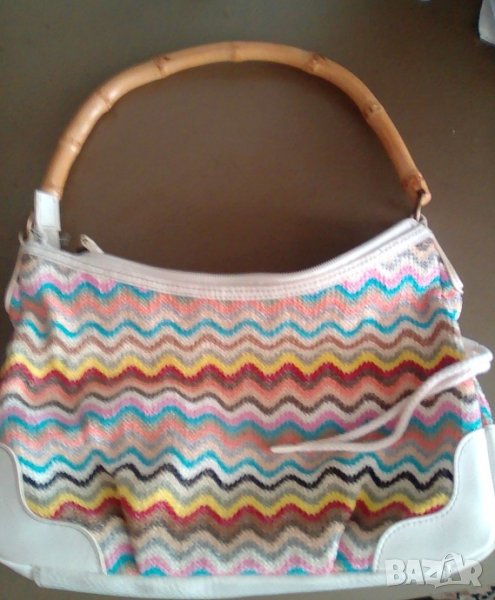 Picard - Дамска лятна чанта, оригинална , кожа и текстил, дървена