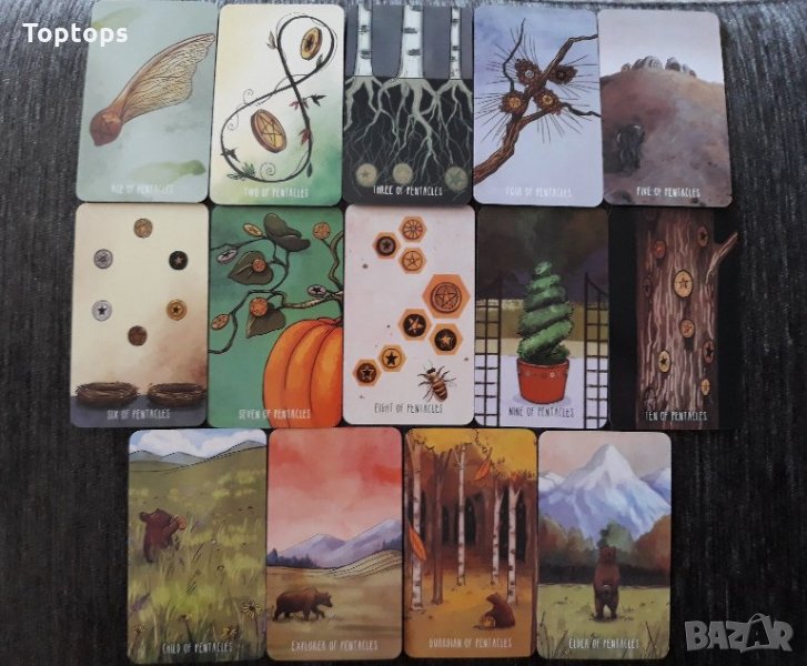 - 78 таро карти - Spacious Tarot заедно с пдф файл с инструкции на английски. Размерът им е 10,5см х 6,3см, колодата е създадена от created by Annie Ruygt и Carrie Mallon.