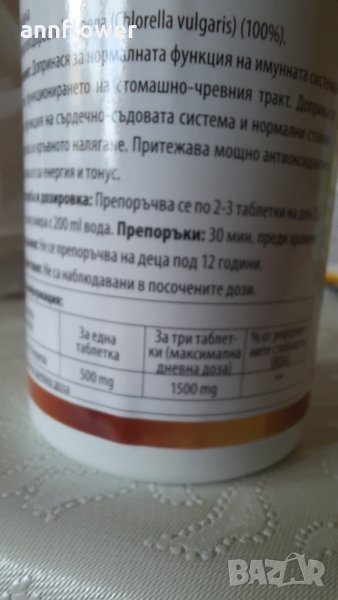 Всяка таблетка съдържа 500мг хлорела (100% Clorela vulgaris )