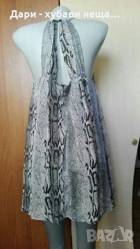 Много нежна и ефектна дреха.Подплатата е полиестер с еластичност.Закопчава се посредством цип на гърба и копче при врата.За дама с ръст до 168см., може да се носи и като рокля.Цветовете са бяло, сиво синьо и черно.