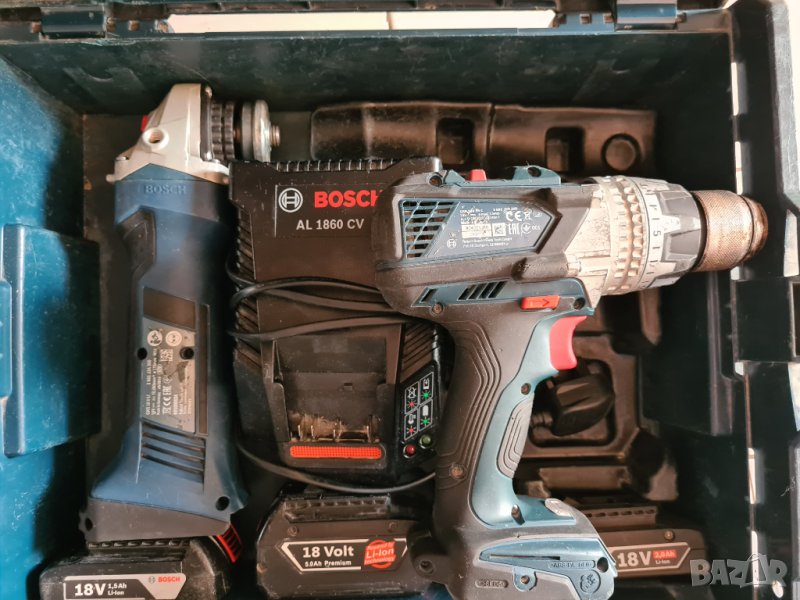 Продавам комплект ъглошлайф и винтоверт Bosch professional . Ъглошлайф Bosch GWS 18V LI , Безчетков винтоверт Bosch GSB 18V 85 C .Комплекта включва три батерии зарядно и куфар. Машините са в отлично работно и визуално състояние, работещи и проверени внос от Англия.