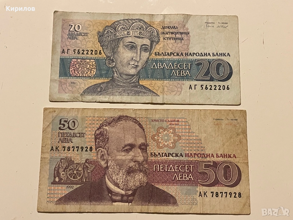 20 лева, 1991г. и 50 лева, 1992 г.