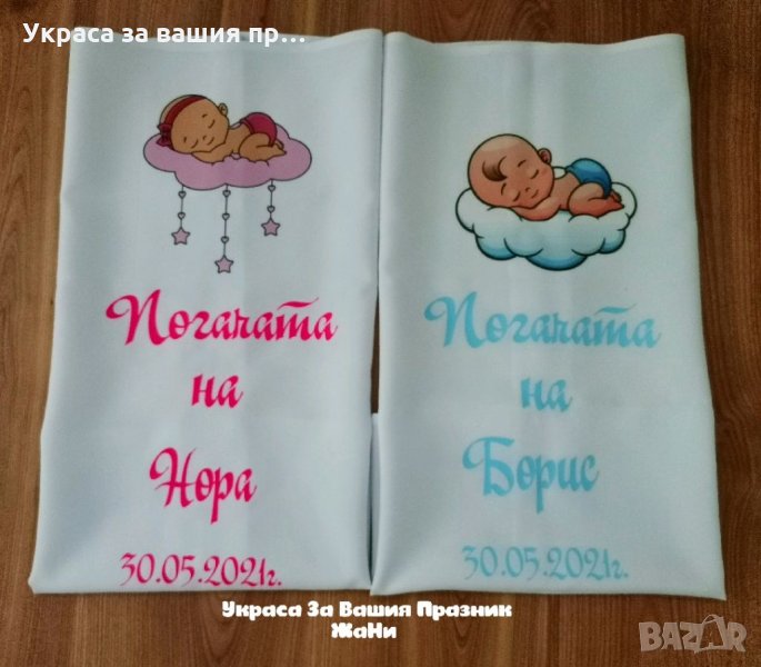 Месал за разчупване на питката с името на детето и датата на празника за бебешка погача → Обява 33818968