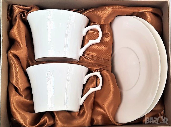 Изискан комплект чаша с чинийка от висококачествен, костен порцелан подходящ за ежедневна употреба, сублимация или празничен подарък за дама , мъж, сватба, годишнина или юбилей.