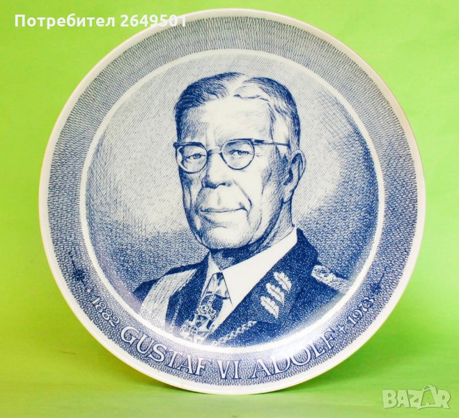 Порцеланова чиния Шведския Крал Густав VI Адолф 1973та → Обява 33840706