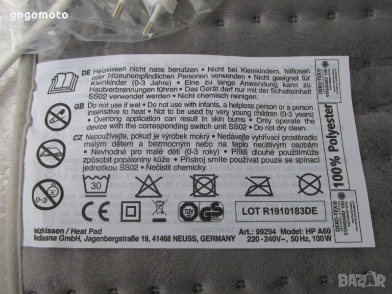 НОВА Електрическа Възглавница MEDISANA, немска, ел. загряваща възглавница, 100W