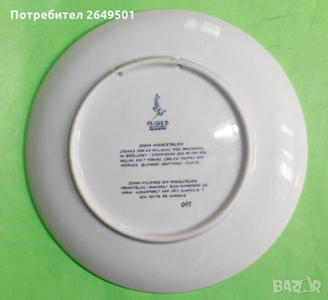 Шведска порцеланова чиния King Carl XVI Gustaf, Queen Silvia → Обява 33844425