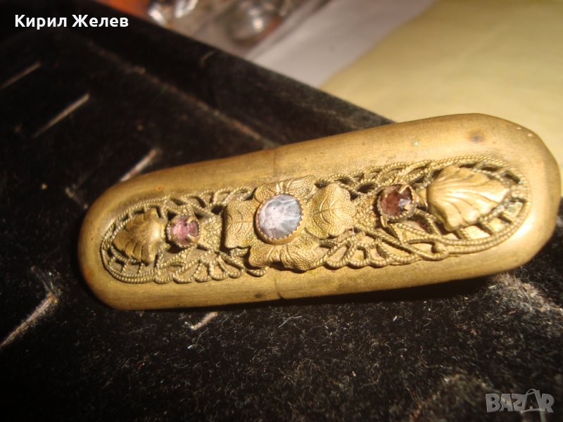 19 ВЕК БРОНЗОВА ФЛОРАЛНА БРОШКА с КРИСТАЛ и АМЕТИСТ ФИНА ЮВЕЛИРНА МАЙСТОРСКА ИЗРАБОТКА УНИКАТ 20921