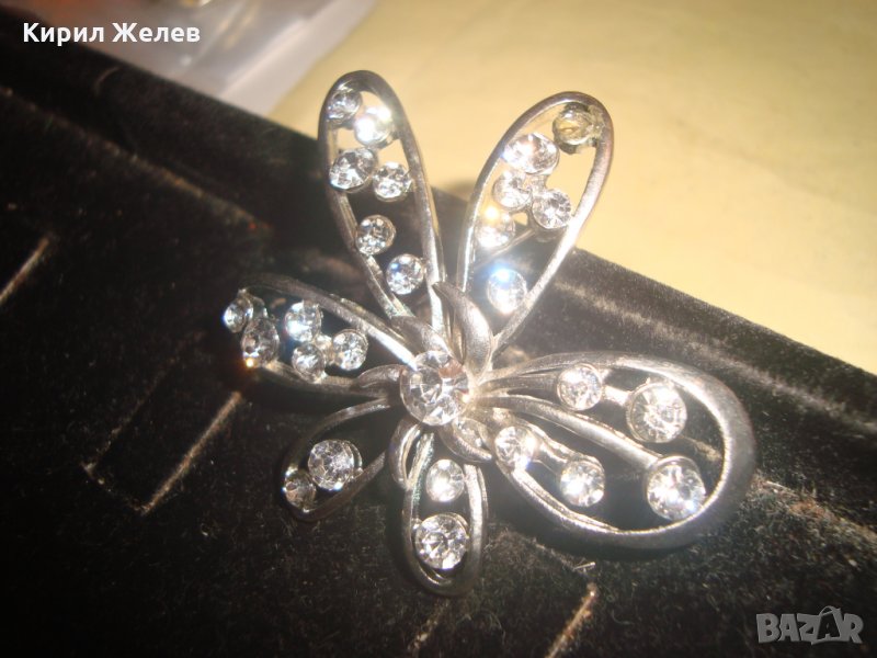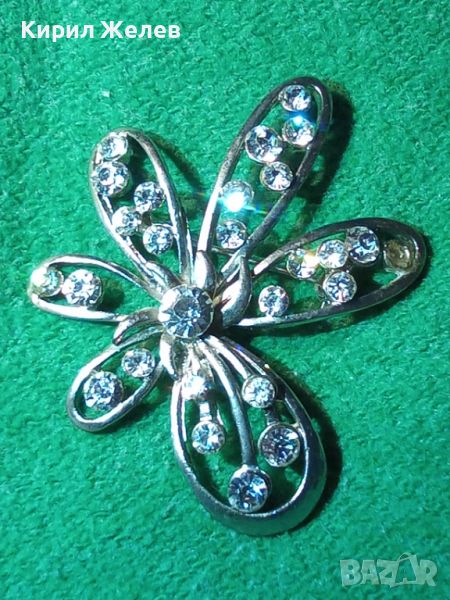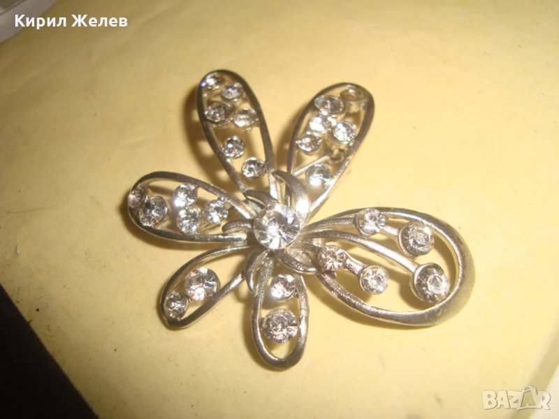 ПОСРЕБРЕНА АРТ НУВО БРОШКА ЦВЕТЕ с ФАСЕТИРАНИ ИСКРЯЩИ ЦИРКОНИ 23770