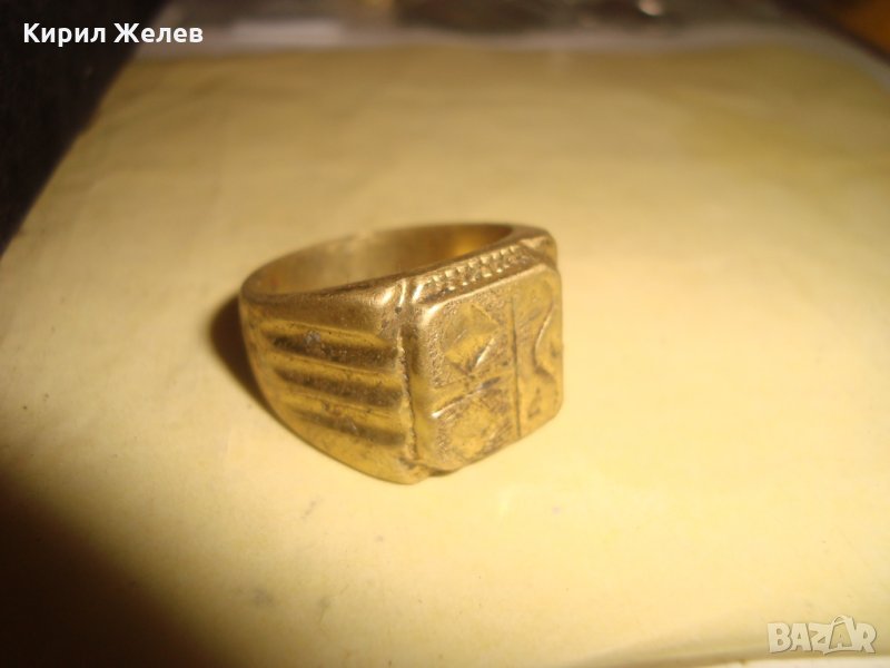 СТАР ПОЗЛАТЕН БРОНЗОВ ПРЪСТЕН ОРНАМЕНТИРАН РЪЧНО МАЙСТОРСКА АРТ ДЕКО СТИЛ ИЗРАБОТКА МАСИВЕН 90159