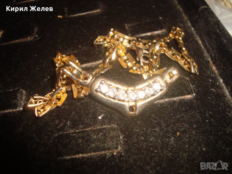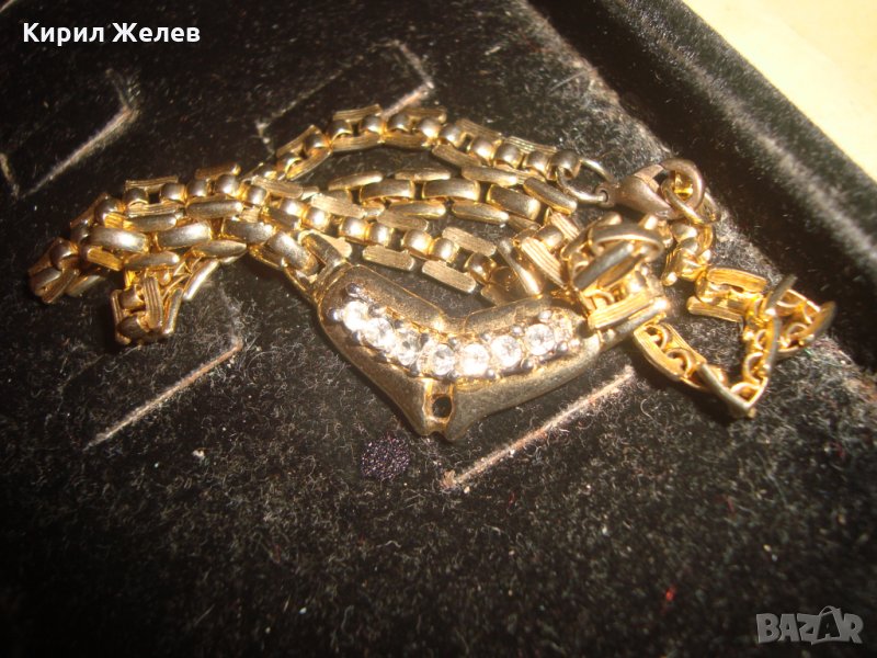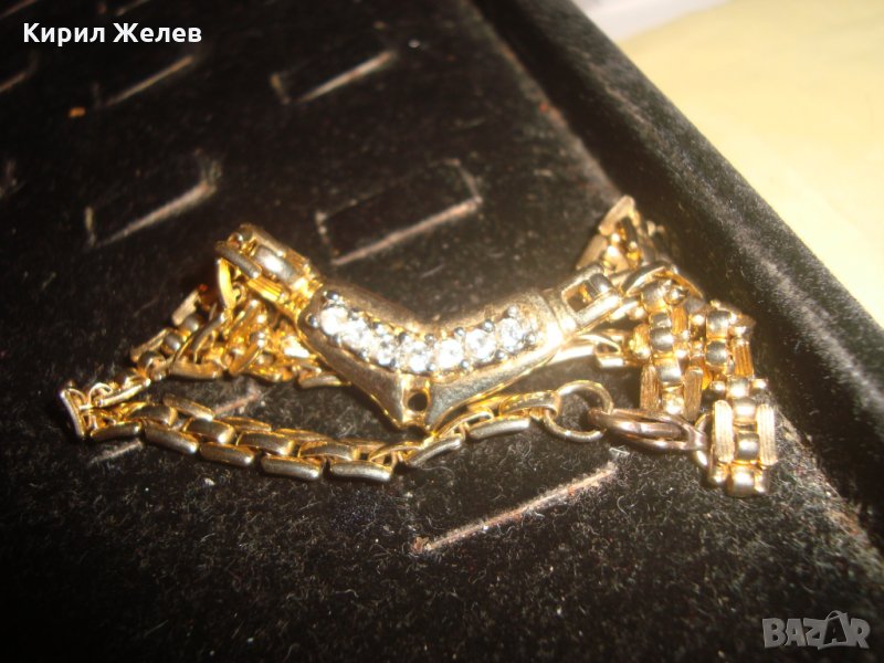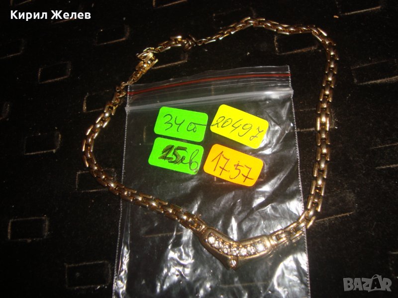 ПОЗЛАТЕНО БРОНЗОВО ВИНТИДЖ РЕТРО АРТ КОЛИЕ с ИНКРУСТИРАНИ ЦИРКОНИ 20497