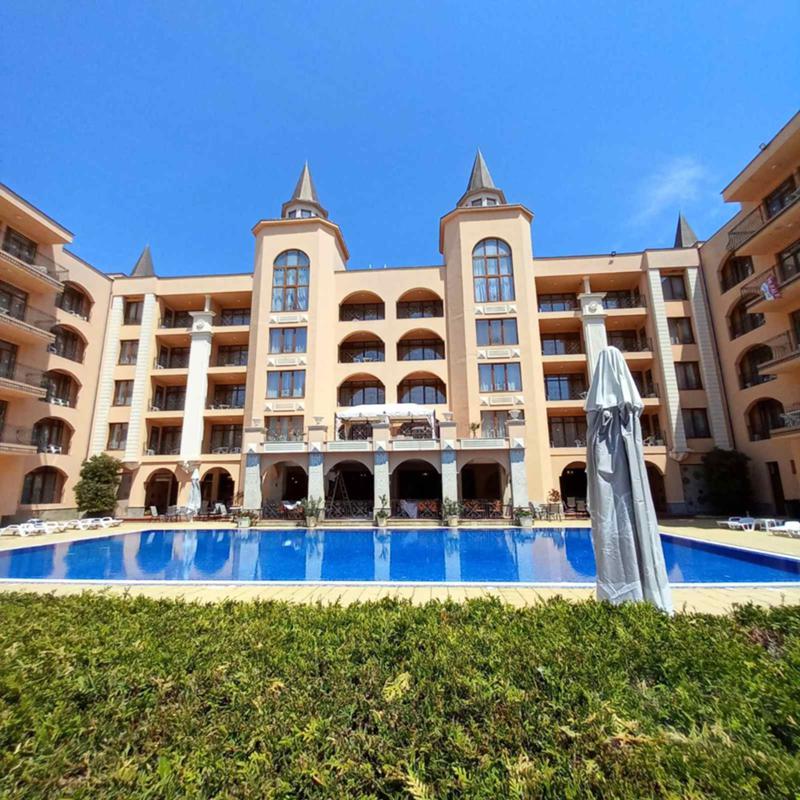 РИКОМС НЕДВИЖИМИ ИМОТИ продава СТУДИО в Апартхотел Палацо (Palazzo), разположен в южната част на к.к. Слънчев бряг, в близост до плажната ивица и популярния плаж и парти - зона Какао бийч. Локацията е отлична и изключително удобна - за няколко минути пеша, може да се стигне до гр. Несебър. Районът е комуникативен - супермаркет, магазини, медицински център, аптека, ресторанти, кафенета, детски площадки, летни атракции, автобусни спирки на градски и междуградски транспорт.