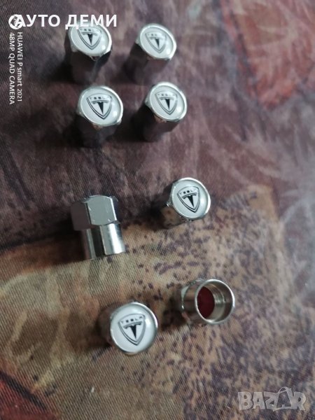 Цена за 4 броя метални капачки за вентили независимо от техният цвят и с емблеми на Tesla - 9 лв .