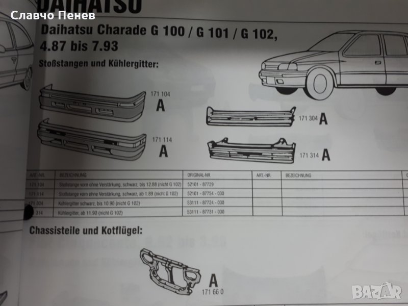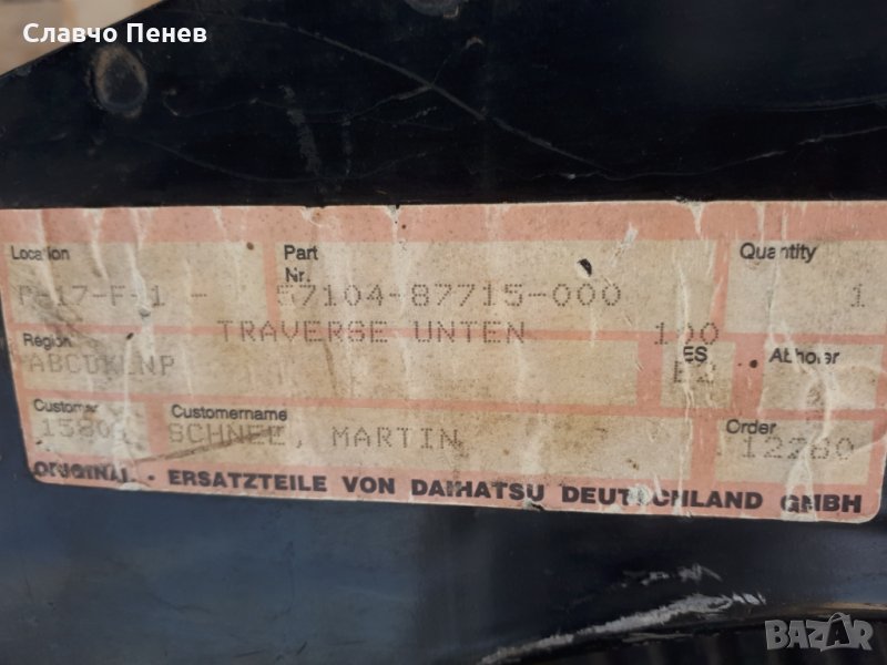 Греда средна челна за Дайхатсу Шарад Daihatsu CHARADE 87-93 ( G100S/102)