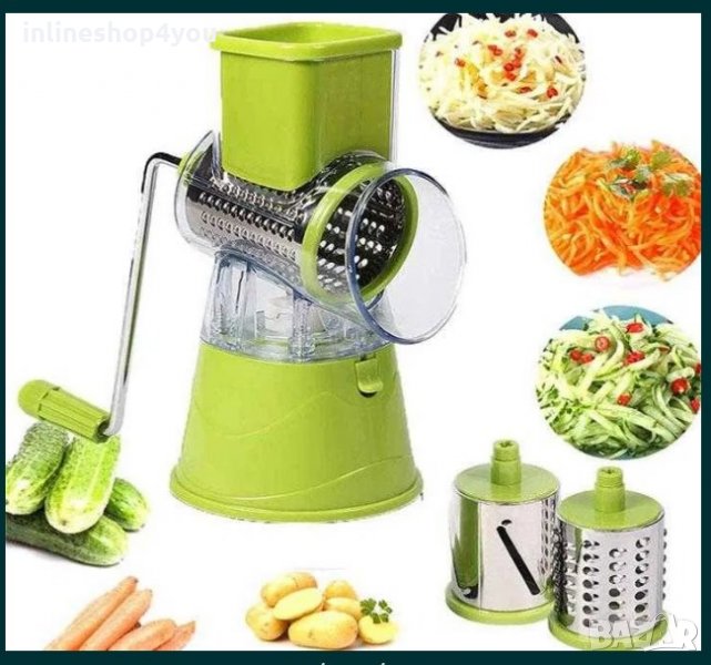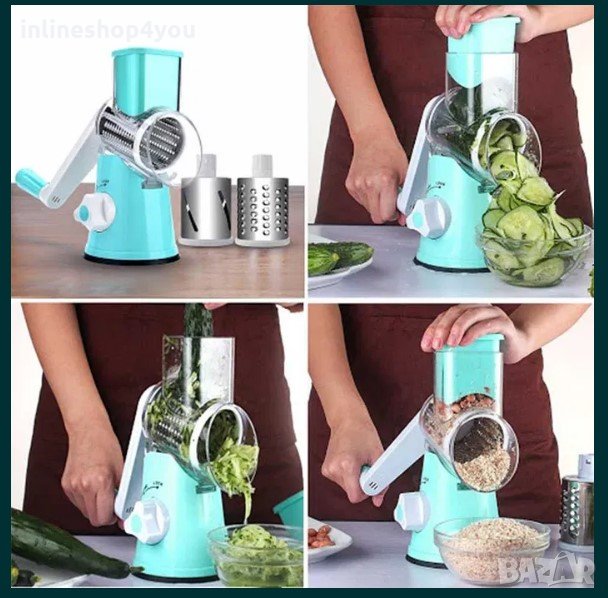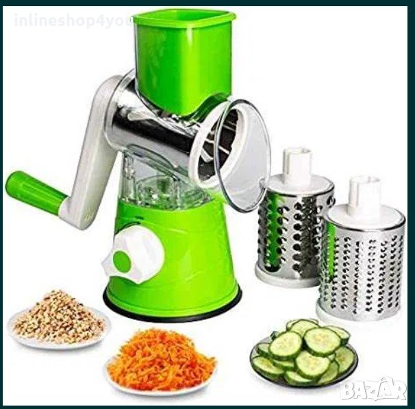Кухненско ренде - мелничка. Многофункционален ръчен зеленчуков шредер на барабан с 3 рендета от неръждаема стомана.