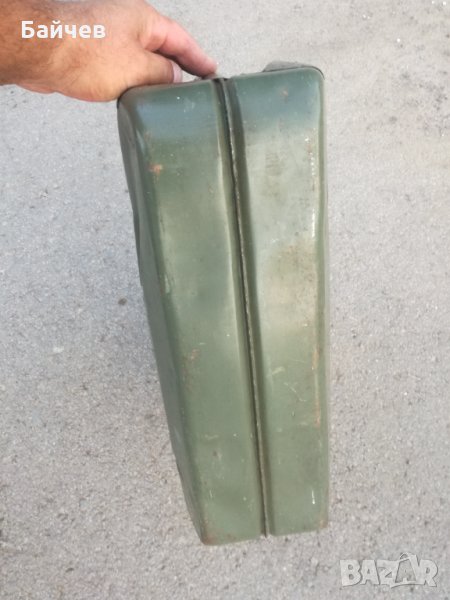 Продавам на снимките тая колекционерска Военна туба Германска метална за гориво 1985г,ясни маркировки,няма пробито в колекционерско състояние идеална за декор интериор колекция води се 20литра,височина 50см,широчина 34см,дебелина 16.5см,скоро внесена от германия.Моля разгледайте и другите ми обяви!