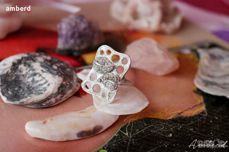 Уникално красив пръстен, изработен от сребро проба 925 и 52 бели кристала. Вътрешен